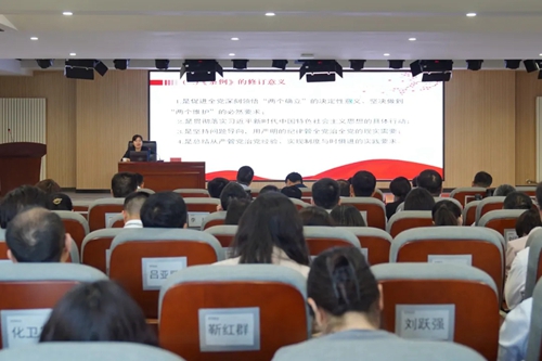 市紀委監委駐城發(fā)集團紀檢監察組副組長(cháng)姬小靜,以《做遵規守紀的明白人》為題,分別從《條例》的歷史沿革、修訂意義、新變化和特點(diǎn)等方面,逐章逐條深度解讀新修訂的《中國共產(chǎn)黨紀律處分條例》。深刻領(lǐng)悟全面從嚴治黨的實(shí)踐要求,切實(shí)學(xué)出政治忠誠、學(xué)出清正廉潔、學(xué)出擔當作為。