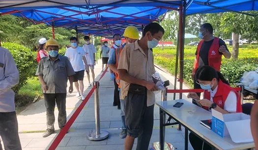 由于龍湖社區(qū)內(nèi)工地數(shù)量多,人員流動性大,檢測人群普遍年齡偏大,給檢測工作著實帶來一定難度。尤其是有一位工友,左腿受傷骨折,打著石膏拄著拐杖來做檢測,他沒有拿身份證且隨行人員都不會熟練操作手機掃碼,但在志愿者的引導下,從帶領(lǐng)他走愛心通道、到協(xié)助錄入信息、幫助他們?nèi)私仄亮舸嬉约白罱K完成檢測,志愿者認真的工作態(tài)度得到了工友和社區(qū)工作者的高度贊揚。檢測期間,志愿小隊統(tǒng)一按照社區(qū)的調(diào)度安排,各司其職,專人專崗,一切行動聽指揮,做到了各環(huán)節(jié)專人負責和快速反饋,整體檢測工作快速有序的進行,僅在15日一天,社區(qū)就完成了4000余人次的檢測。來自龍湖社區(qū)的居民表示,第四次核酸檢測相較于前幾次效率明顯提高且秩序良好,從最初的半個小時以上到現(xiàn)在的幾分鐘,這不僅是效率質(zhì)變,更是廣大一線工作人員的付出心血,大家都非常感謝他們。