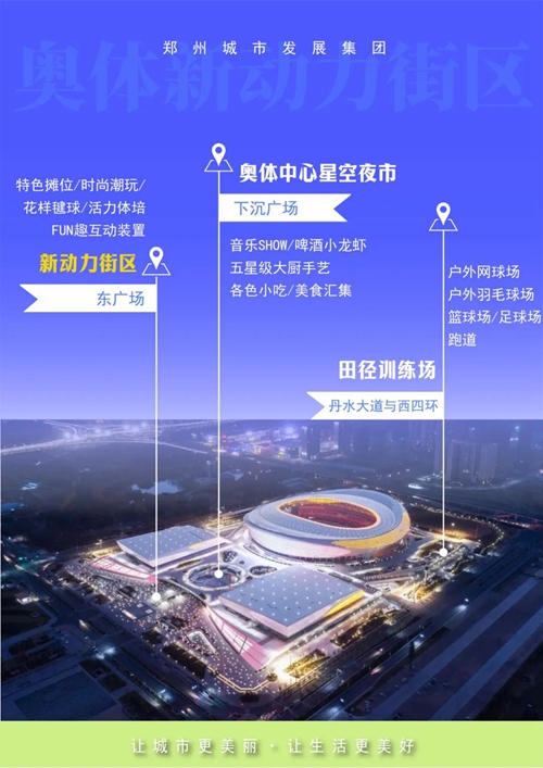 在這座地標(biāo)性運(yùn)動主題休閑公園中,以運(yùn)動釋放壓力,以美食致敬生活,妝點(diǎn)專屬于鄭州人的鮮活、元?dú)庀娜铡?/span>