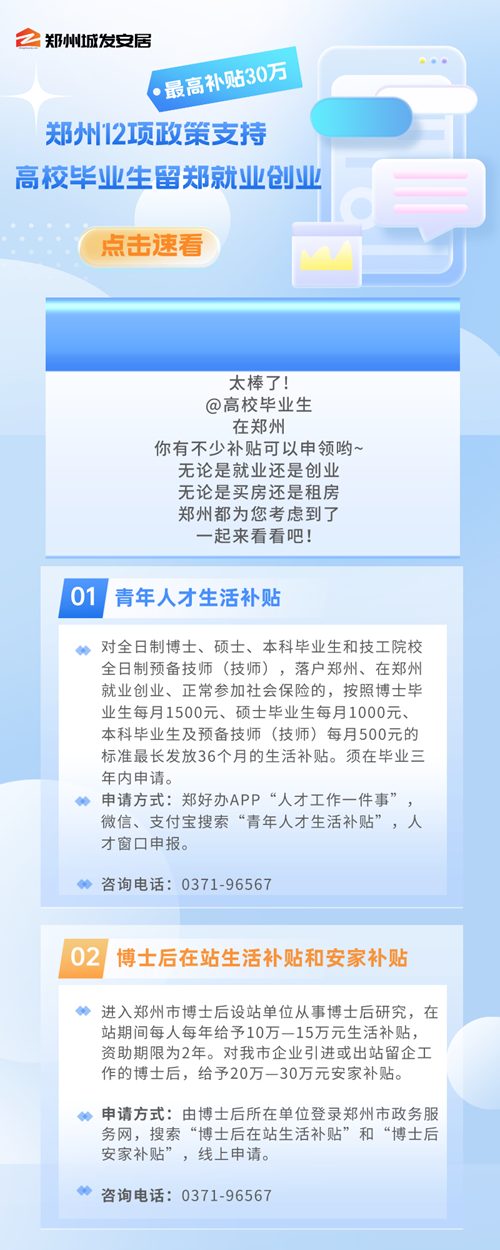 近年來(lái),鄭州市通過盤活存量房源用作人才公寓、發(fā)放購(gòu)房租房補(bǔ)貼等形式,多渠道解決人才階段性居住需求。比如,鄭州市創(chuàng)新實(shí)施人才補(bǔ)貼,除了人才公寓以外,符合條件的博士、碩士、學(xué)士學(xué)位畢業(yè)生,5年內(nèi)分別可享每月3000元、1500元、1000元房租補(bǔ)助,購(gòu)房給予10萬(wàn)元到30萬(wàn)元不等的一次性購(gòu)房補(bǔ)貼。