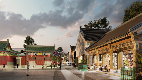 項目圍繞其毗鄰的文廟、城墻等文化遺存,處于較為幽靜的環(huán)境,整體業(yè)態(tài)定位偏于文化和雅致;項目以中原傳統(tǒng)建筑為設(shè)計基礎(chǔ),采用明清時期建筑風格,將文廟、城垣與商業(yè)街區(qū)融為一體,增加街區(qū)的文化品位與底蘊。