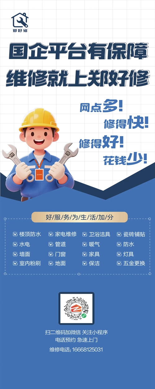 “鄭好修”平臺的市場化拓展路徑清晰明確。平臺將圍繞水電安裝維修、管道疏通、防水補漏、門窗安裝維修4大類11大項410小項開展業(yè)務(wù),未來將逐步拓展家用電器售后維修服務(wù)領(lǐng)域,形成“政府主導,市場化運作”的綜合維修服務(wù)模式。