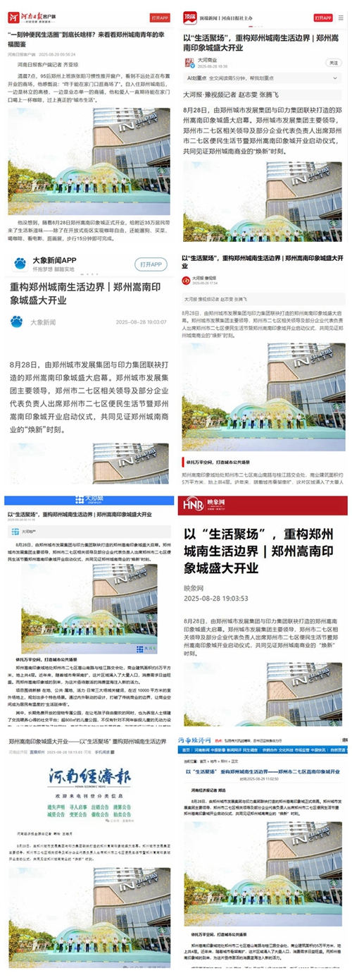 8月28日,鄭州城南商業(yè)格局迎來(lái)重大變革,由鄭州城市發(fā)展集團與印力集團攜手打造的鄭州嵩南印象城盛大啟幕,開(kāi)業(yè)首日客流達12.6萬(wàn)人次,迅速成為全城矚目的焦點(diǎn)。這一盛事引發(fā)了各大媒體的廣泛關(guān)注,河南日報客戶(hù)端、頂端新聞、大象新聞、大河報、大河網(wǎng)、映象網(wǎng)、河南經(jīng)濟報、鄭州日報、鄭州晚報、鄭州廣播電視臺等媒體紛紛聚焦,對其開(kāi)業(yè)進(jìn)行了全方位、多角度的報道。