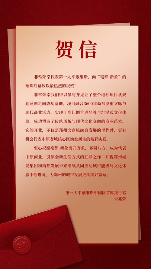 “亳都·新象”由城發(fā)集團投資建設,項目的成功開(kāi)街,不僅是商業(yè)運營(yíng)的勝利,更是城市文化與商業(yè)融合發(fā)展的典范。第一太平戴維斯中國區首席執行官朱兆榮在賀詞中表示,“亳都·新象的開(kāi)業(yè),不僅是鄭州文商旅融合發(fā)展的里程碑,更有機會(huì )代表中原老城核心區煥發(fā)新生的精彩實(shí)踐。”