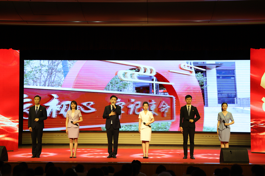決賽中,來自鄭州地產(chǎn)集團西流湖公司的曹珂、魯照宇、白承灝和來自鄭州地產(chǎn)集團鄭地發(fā)展公司的張雅欣、單凌云、康宇皓用生動的語言、昂揚的風貌,講述了中國共產(chǎn)黨建黨百年來帶領(lǐng)人民求解放、謀復興的輝煌歷程,講述了鄭地人為城市發(fā)展繪就宏偉藍圖、奏鳴城市交響的生動實踐,講述了共產(chǎn)黨員主動擔當、奮發(fā)有為,為黨旗增光添彩的初心使命,用“百年交響”唱出獻給黨的深情贊歌,不僅展示出新時代國資國企黨員干部愛黨愛國的情懷和昂揚向上的精神面貌,更為觀眾帶來了一場精彩的視聽盛宴。