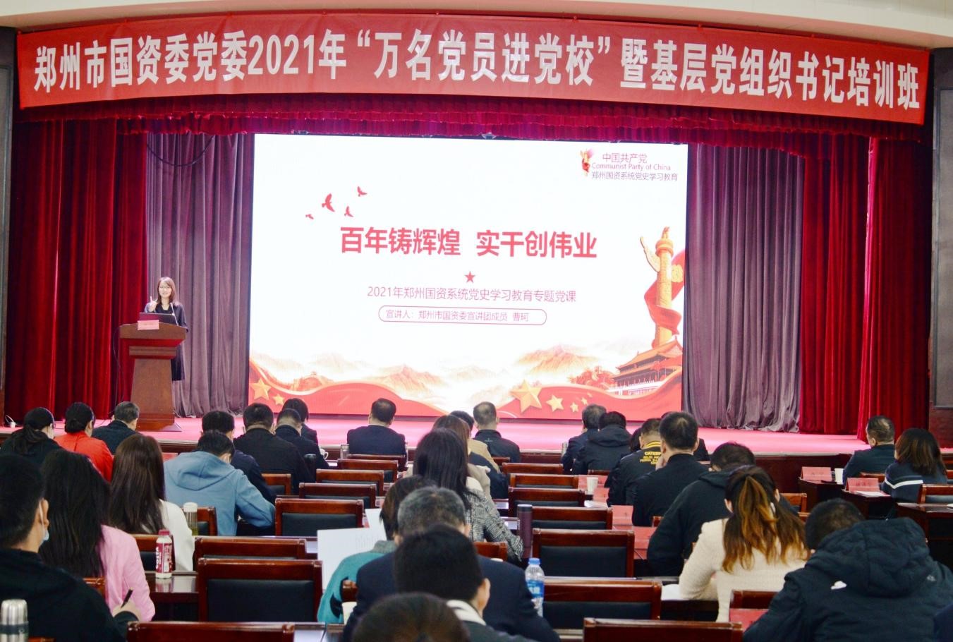 10月19日,鄭州市國(guó)資委黨委舉行2021年“萬(wàn)名黨員進(jìn)黨校”暨基層黨組織書記培訓(xùn)活動(dòng),鄭州地產(chǎn)集團(tuán)西流湖公司黨支部曹珂同志作為市國(guó)資委宣講團(tuán)成員,向市國(guó)資委黨委市管企業(yè)優(yōu)秀黨支部書記、優(yōu)秀共產(chǎn)黨員130余人進(jìn)行了以《百年鑄輝煌 實(shí)干創(chuàng)偉業(yè)》為主題的黨課宣講。
