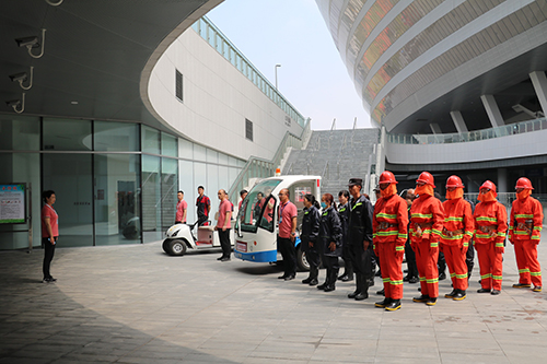 在鄭州奧體中心,沈陽詳細查看地下出入口防汛物資儲備情況,觀看河南鄭地奧體中心管理有限公司組織的防汛應急演練,對奧體中心的防汛工作給予肯定。他強調(diào),要加強組織領導,不斷提高指揮決策、預報預警、動員能力,落實值班制度,備足防汛物資,全面提升應急處置和管理水平。